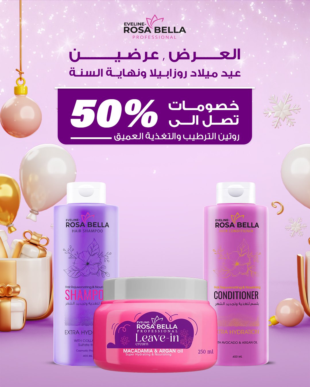 روتين متكامل للتغذية والترطيب العميق، يجمع بين ليف إن روزابيلا وشامبو وبلسم الموف بتركيبة غنية تعيد للشعر نعومته، قوته ولمعانه، وتقلل الجفاف والتقصف من أول استخدام.
