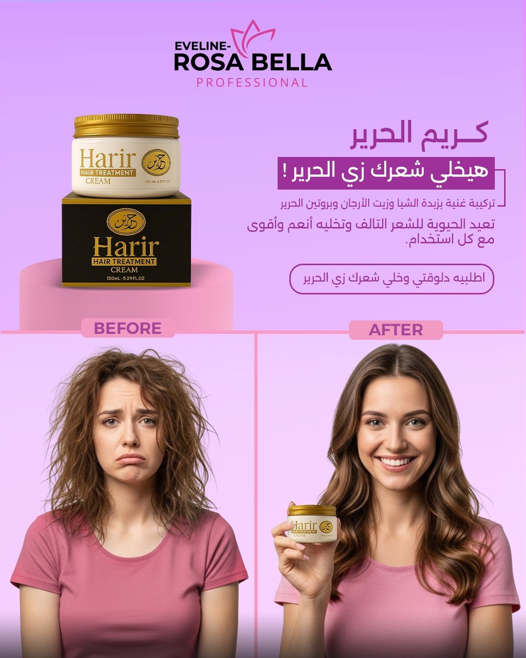 النتيجة: ترطيب عميق، تقليل التقصف، ملمس ناعم.