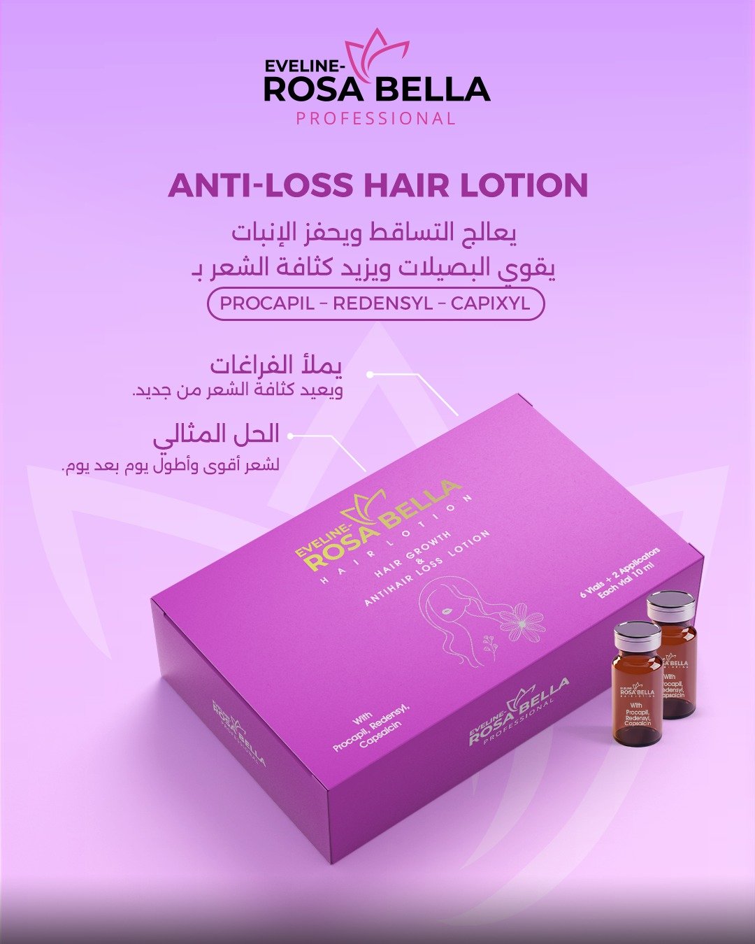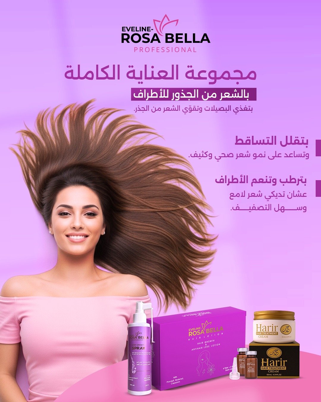 روتين علاجي متكامل من روزابيلا صُمّم خصيصًا لعلاج التساقط الوراثي وتحفيز نمو شعر جديد من الجذور