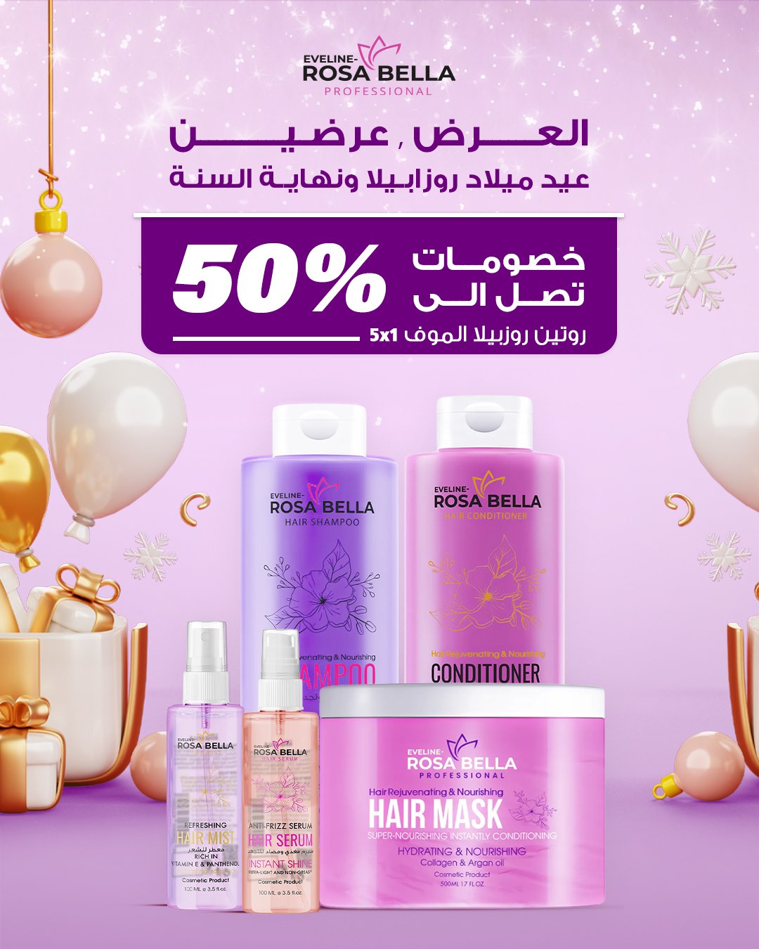 تم تطوير مجموعة روزابيلا الموف بتركيبة علمية فاخرة غنية بـ البيوتين، الكولاجين، بروتين القمح، زبدة الشيا، زيت الأرجان، البانثينول، وفيتامين E،